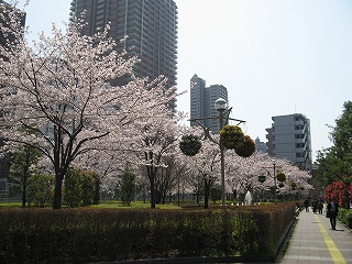 川口駅西口公園の桜の様子です。