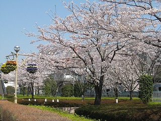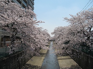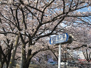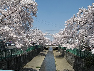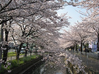 川口市前川にある、ダイヤモンドシティキャラの隣を流れる、みどり川桜道りの桜の様子です。