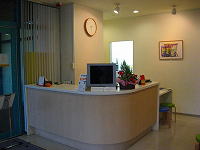 待合室が広いのでべビーカーのまま院内にはいれます。また丸い受付カウンターや明るい色彩は