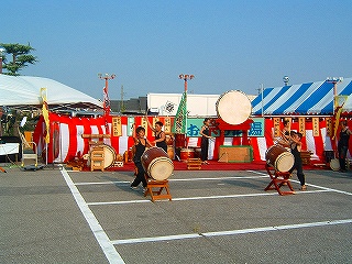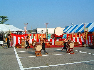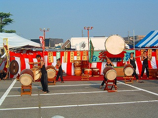 | 参加団体による和太鼓の気合が、会場の暑さを吹き飛ばしてくれました。 |