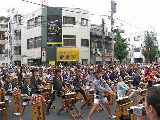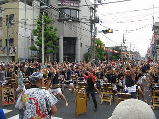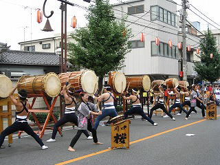 | 市役所前通り会場では迫力ある初午太鼓が、たたら祭りの開始合図となりました。 | ||||