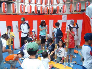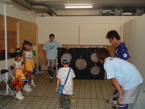 | 子供チャレンジ広場では空き缶を使った遊び他、多くのお子様達に人気がありました。 |