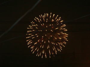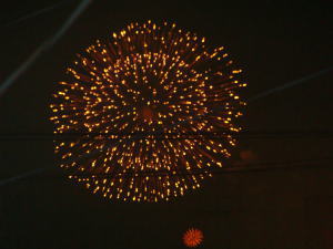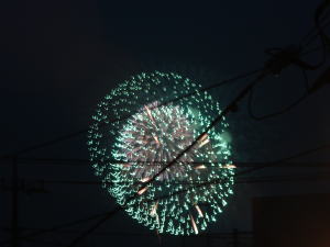 | 小雨降る中、何とか花火の打ち上げも行われました。スタッフの皆さんお疲れ様でした。 |