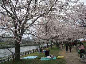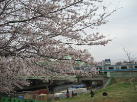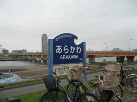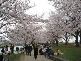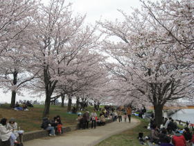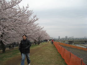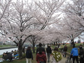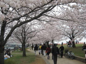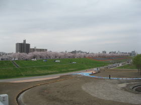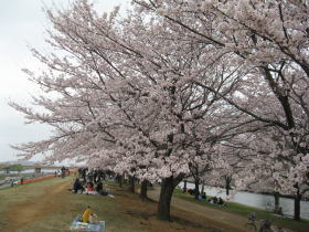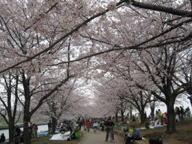 122号の荒川大橋の上から撮った写真です。 生憎の天気でしたが、大勢の花見客でにぎわっていました。