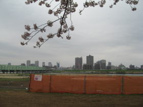 そろそろ時間も・・最後に川口で一番高い高層マンション エルザタワー55をバックに 荒川土手の桜写真館でした。