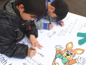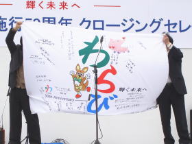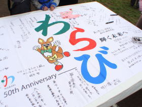 記念フラッグには市民の皆さんが、50周年記念のコメントを記入出来ました。